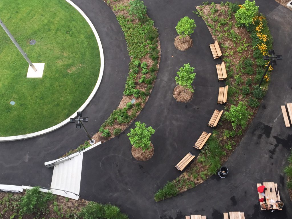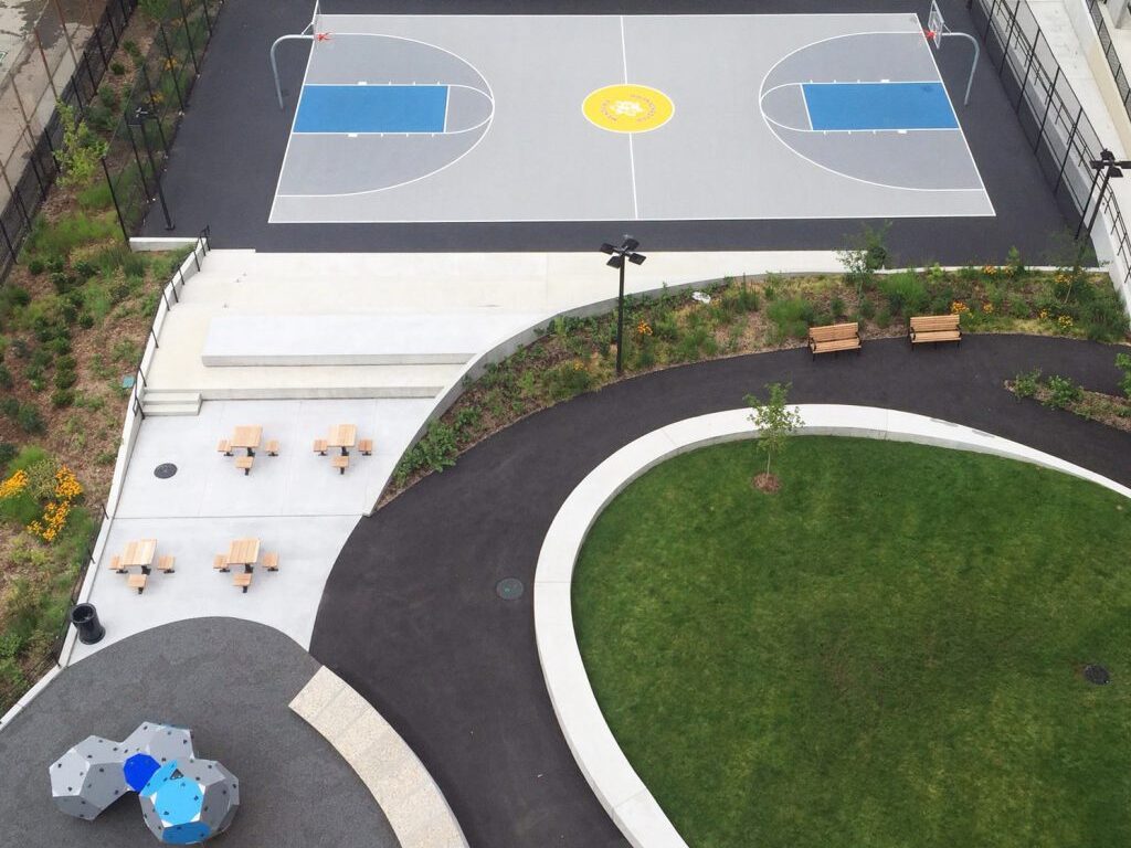The Bronxchester landscape serves the residents of its 207 apartments as well as BronxWorks, a community-building program for all ages. JPLA’s site design strategies were to strengthen the outer perimeter, soften the spaces within the site, and to increase the variety and quality of the landscape spaces within the site. The design created spaces for individuals and groups, for children, adults and seniors, areas with pedestrian paving and those with lawn or dense planting. The landscape is made up of native and adaptive planting areas, pathways, seating areas, basketball courts with amphitheater seating, playgrounds, community gardens and entry progressions. The result is an open but varied campus that provides a great range of uses and flexibility of experience for the entire community.