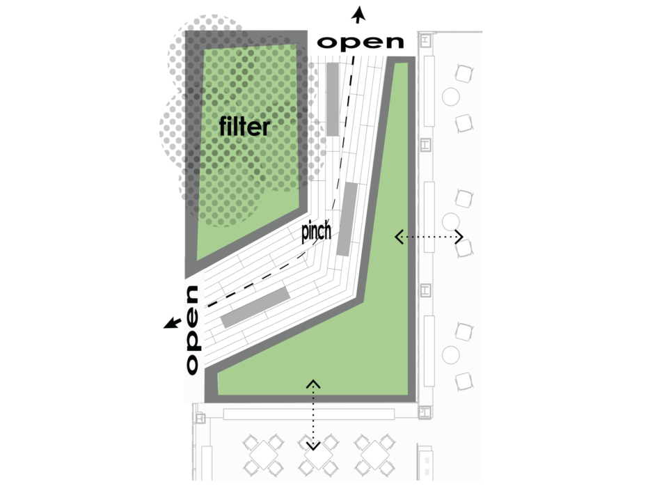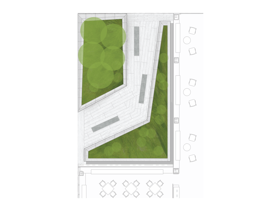 This publicly accessible plaza in the East Village of Manhattan is a signature space within this hospital campuses multi-year master plan. Canted stone walls with planting anchor the plaza on the corner of this busy intersection and create a verdant foreground to the hospital building. The landscape provides dynamic views for the interior lobby space and protected places to sit and gather amongst lush plantings. Trees and shrubs add ecological value by attracting pollinators and providing habitat for local birds, as well as absorbing excess rainwater before it flows into the local storm water system.
