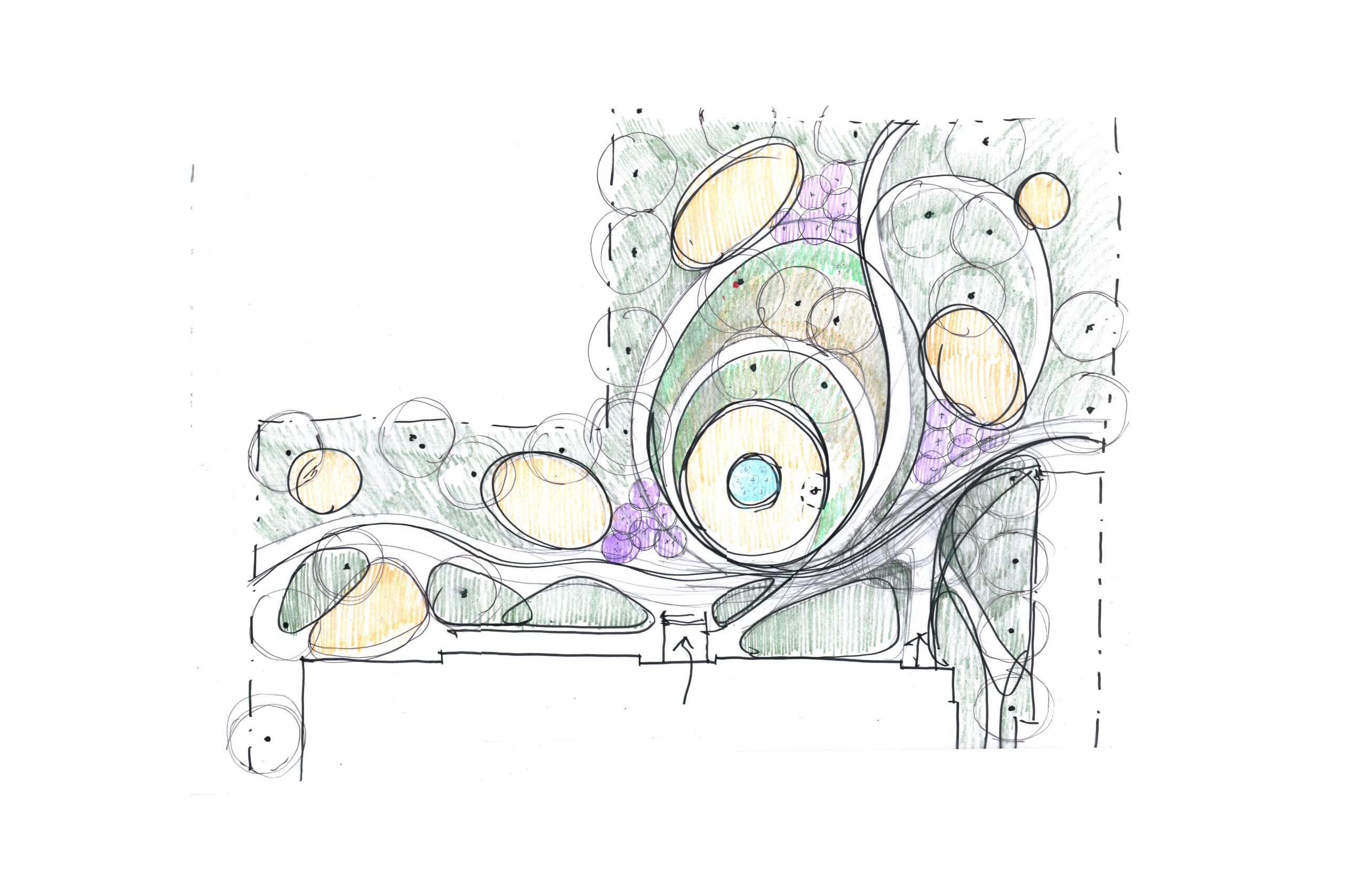At the heart of it all, an amphitheater built into the existing hillside anchors the site as a natural gathering place for events and everyday life alike. Along the paths are dedicated spaces for fitness, children’s play, quiet rest, and community gatherings. Curved benches shape the landscape into a series of distinct outdoor rooms — intimate enough for conversation, generous enough for a class, a party, or a neighborhood gathering that spills across the lawn. Key-fob entry gates and clear sightlines throughout directly address residents’ safety concerns. Native shrubs and groundcovers layer the landscape with seasonal color while keeping maintenance reasonable.