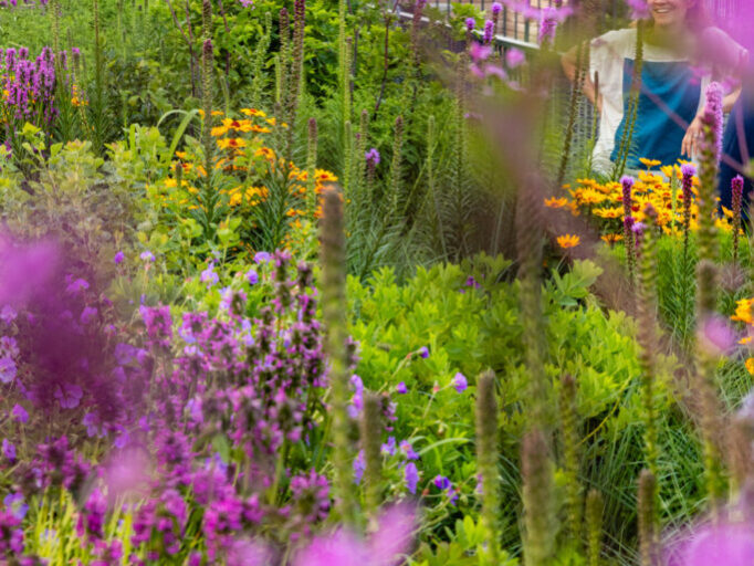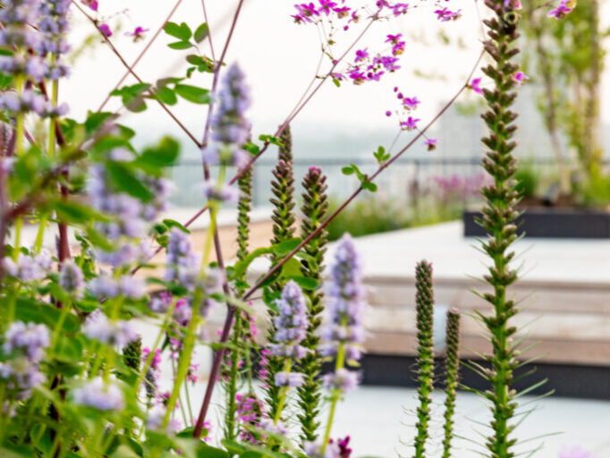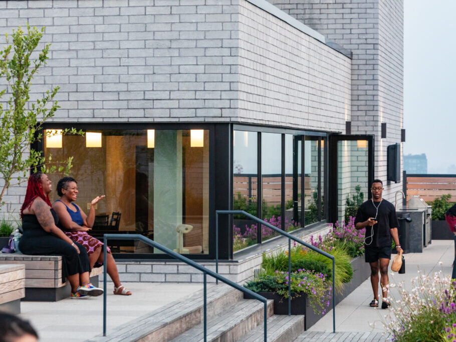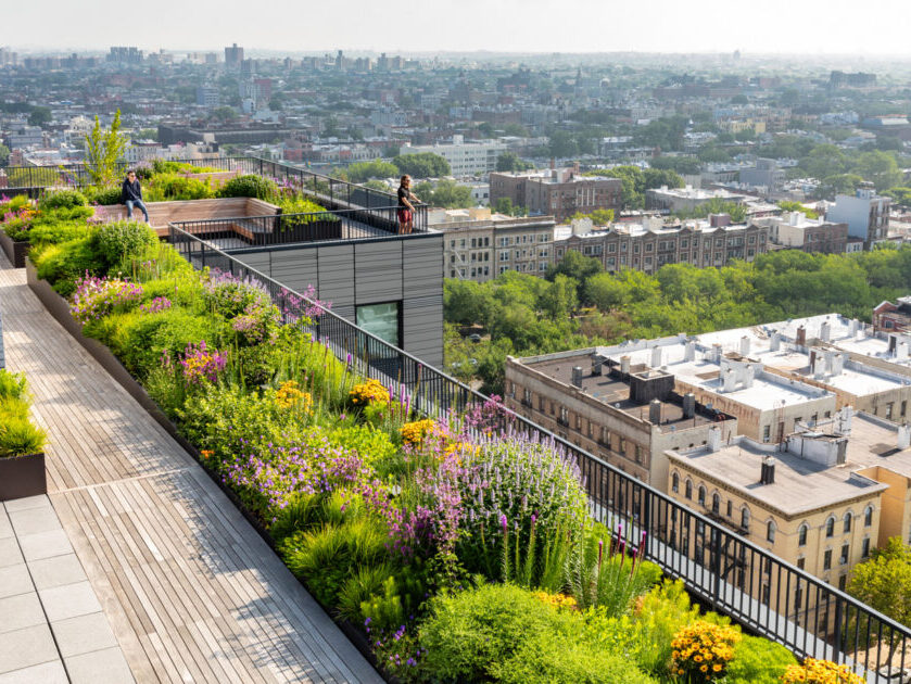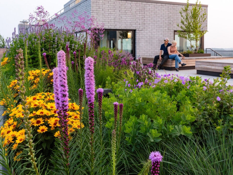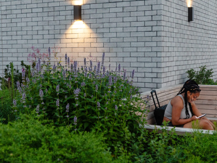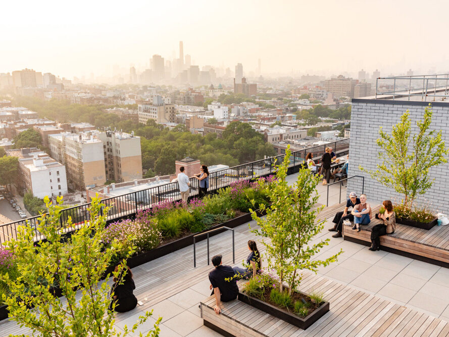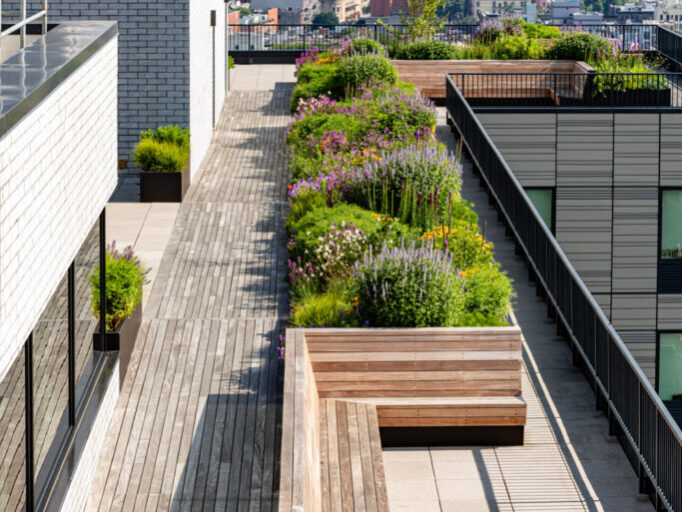 This multi-family residential building in the Crown Heights neighborhood of Brooklyn features a 12,000 sf rooftop terrace on the 16th floor and two 4,000 sf viewing gardens on the ground level. The Arch includes a combination of affordable and market rate residences as part of a larger mixed-use development in the neighborhood that includes the transformation of a historic armory building into a community recreation and wellness center. The rooftop landscape includes custom wood banquettes and benches, a raised viewing deck with lounging platforms, a fitness area, and two outdoor kitchens – all connected by a linear wood boardwalk pathway amongst native meadow plantings. The viewing gardens on the ground floor are pictorial landscapes designed to be viewed from the various perspectives of apartment windows on either side of the building.