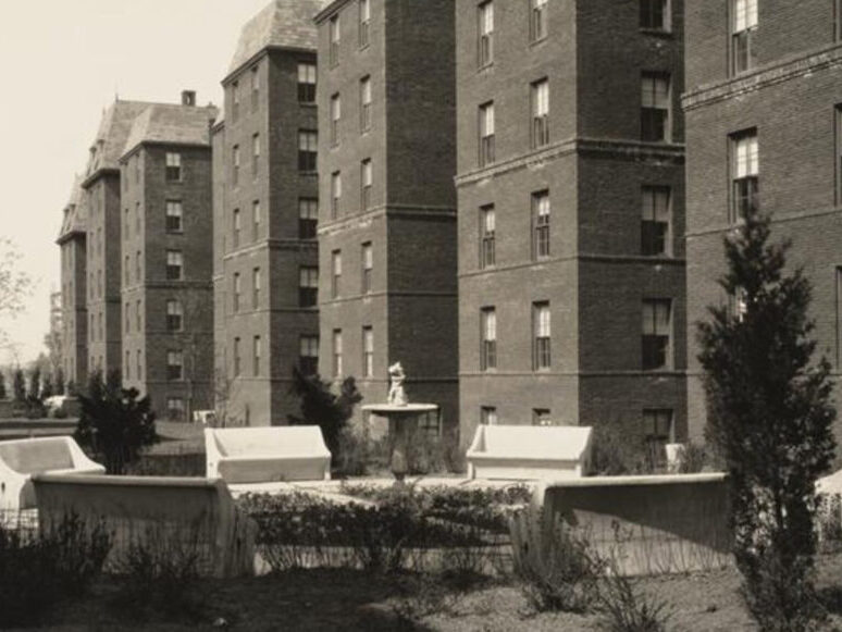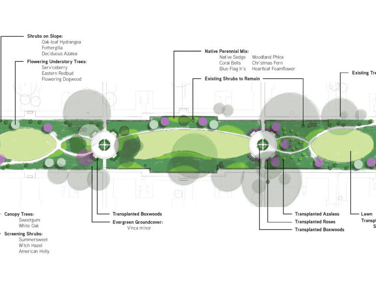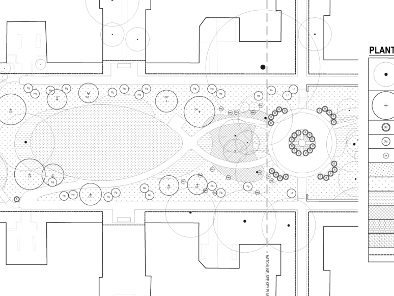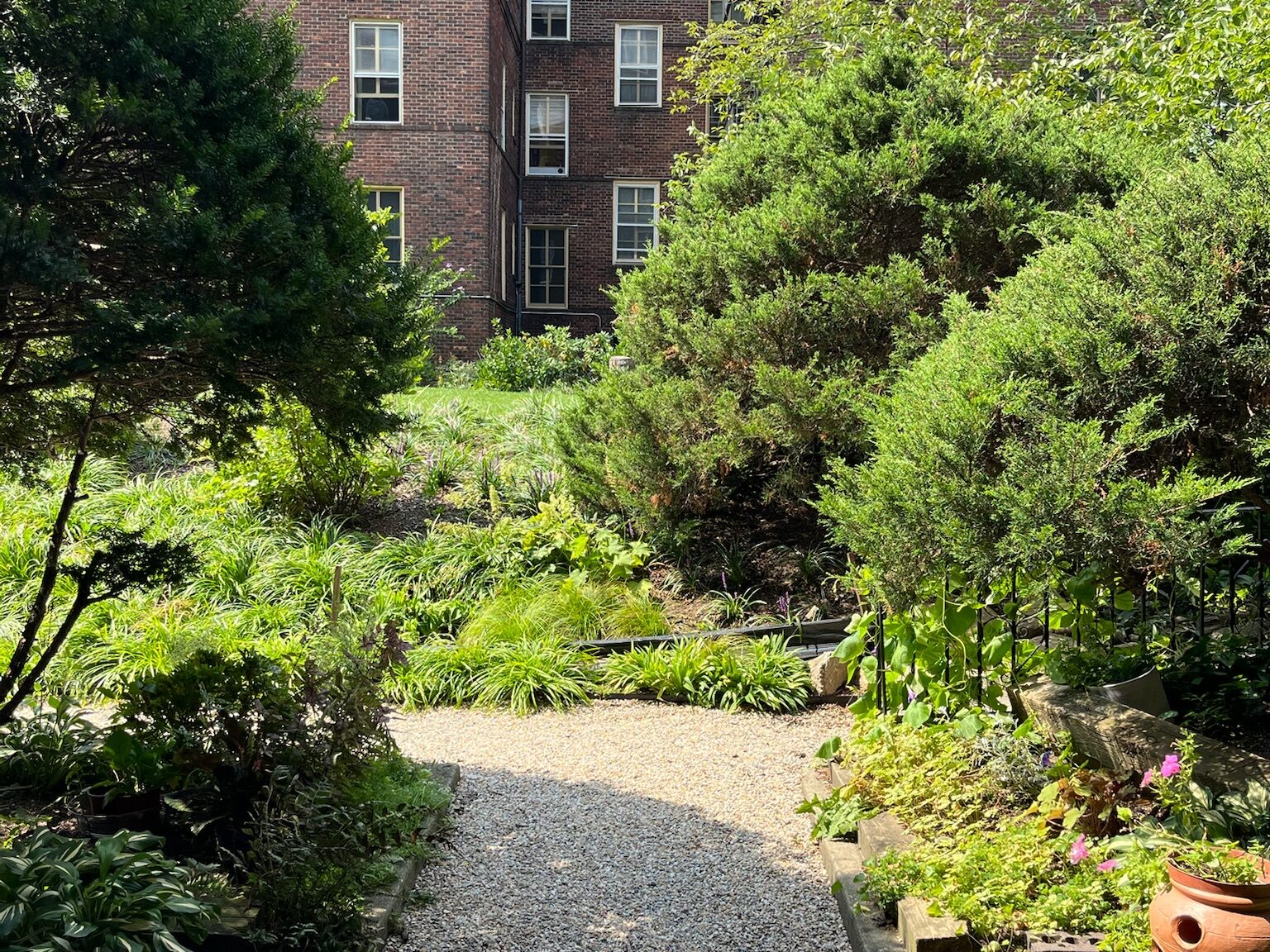 The Chateau Garden is a historic “garden-city” co-op development built in the early 1920s in Jackson Heights, Queens. Little investment in the site’s aging paths and drains had resulted in flooding and damage to foundations. Additionally the Mature American Elms have transformed Chateau’s character from a sunny formal garden to a shady urban woodland. JPLA’s renovation project focuses on replacing hardscape with accessible permeable paths and installing green infrastructure reservoirs to mitigate drainage issues. The resulting expanded path network and planting design responds to the change of conditions in its 100 year history while respecting the original character of the design.