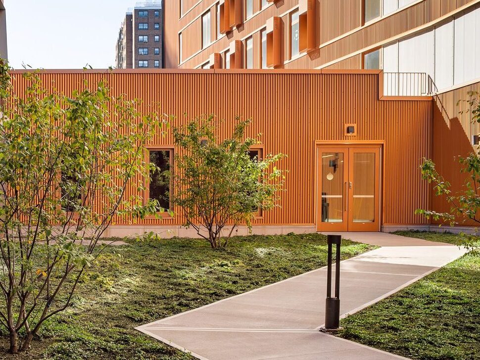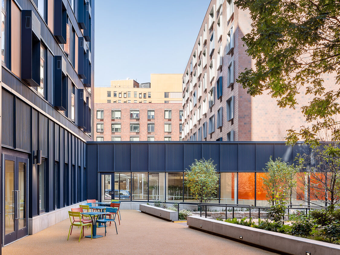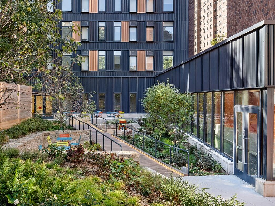 Tres Puentes is a new 118 unit building serving low-income seniors, located at 285 East 138th Street, Bronx NY.  The project includes the West building, with 56 units and East building that includes a new Community Senior Center. The new building and landscapes fulfill the guidelines of Enterprise Green Communities and NYC Active Design, with a sustainable design that promotes active living. The landscape scope includes 16,000 sf of open space including a community terrace on the first floor roof, a meditative garden, and an activity court for the senior center. The design also includes the integration of the existing 25,000 sf entry and rear garden into the overall site design.